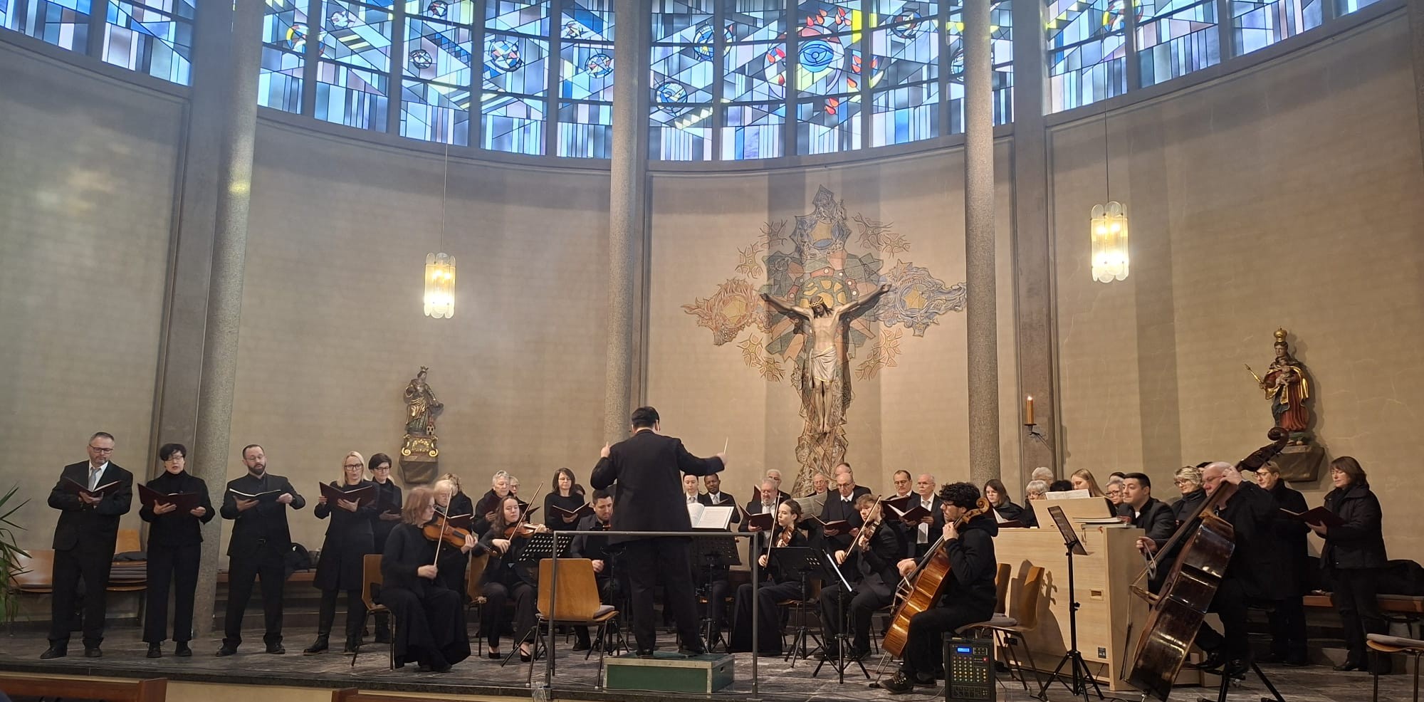 Die teilweise komplementären Rhythmen in Chor und Orchester wurden von beiden gekonnt umgesetzt, das Zusammenspiel z.B. der durchgehenden Sechzehntel bei den Violinen und den langen Notenwerten des Chores klappte ebenso wie die ungewöhnlichen Modulationen im Credo. Ein großes Lob an dieser Stelle an alle Mitwirkenden, die dem Dirigat von Hyunsik Shin aufmerksam folgten.