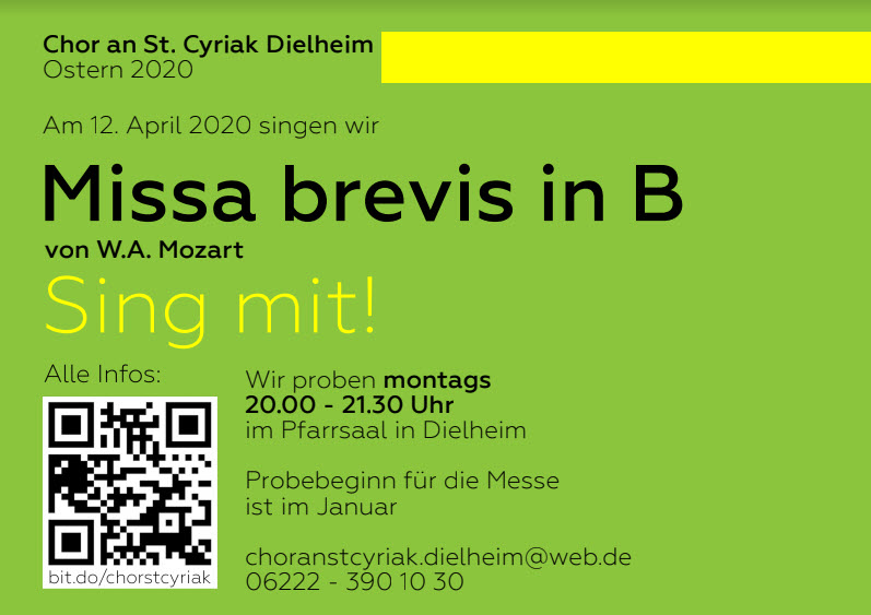 Noch können wir nicht sagen, ob wir im Ostergottesdienst und bei der Erstkommunion singen werden. Klar ist aber, dass es an Ostern leider nicht die angekündigte Mozartmesse sein wird. Ohne die Proben vorher schaffen wird das nicht.