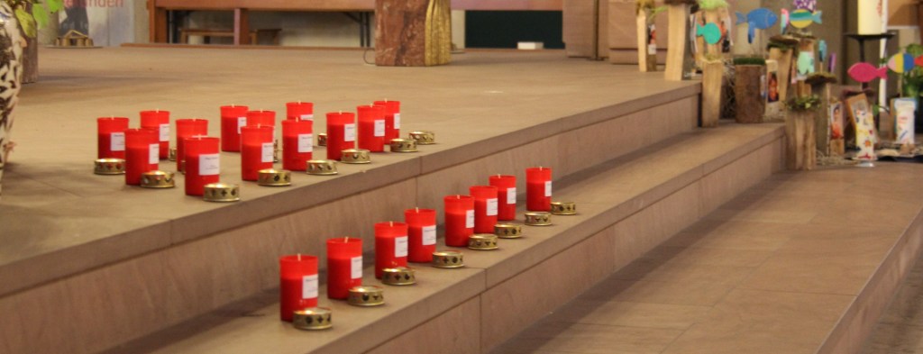 Gemeinsam mit den Gottesdienstbesuchern gedachten wir und beteten für die verstorbenen aktiven und passiven Mitglieder, die Gott in den vergangen 12 Monaten zu sich gerufen hat, ebenso für unseren ehemaligen Dekanatschorleiter Joachim Budde und unseren ehemaligen Präses Pfarrer Herribert Leider. Zur Erinnerung zündeten wir für jeden eine Kerze an.